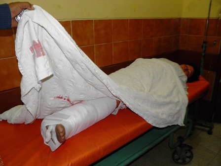 La lata de una bomba lacrimógena le destrozó la pierna izquierda. Ensangrentada fue evacuada al Hospital La Caleta, donde se recupera.
