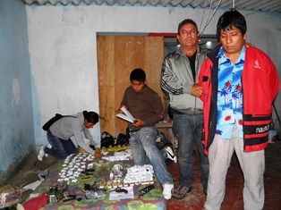Este facineroso tenía en su pode 841 envoltorios de PBC, 98 pacos de marihuana, un revólver abastecido, un encendedor modelo pistola y 4000 soles, de los cuales 1500 eran falsificados.