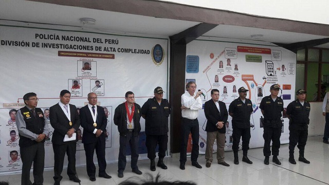 El ministro del Interior Carlos Basombrío destacó la labor de la Policía que atrapó a 19 presuntos integrantes de este grupo criminal, quienes se hacían pasar por falsos taxistas de las empresas Línea 50, Las Palmeras, Sarita Colonia 50.1, y Los Cedros para cometer sus delitos en complicidad de mujeres llamadas peperas.