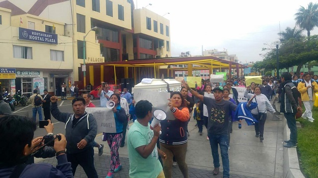 El cortejo fúnebre recorrió las sedes de la Policía, Fiscalía, Poder Judicial y llegó hasta la misma plaza de armas de Chimbote, donde los acompañantes protestaron por la liberación del asesino de Anabel.