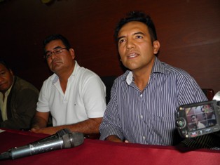 El ex alcalde sureño apareció sorpresivamente en el auditorio de la Cámara de Comercio, donde el presidente regional César Álvarez Aguilar, realizaba una conferencia de prensa sobre la macrorregión Ancash-Huánuco-Ucayali.