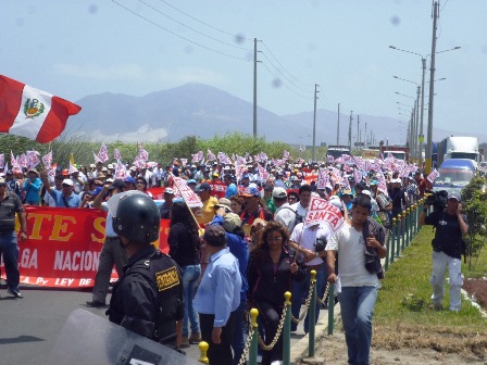 por la carretera Panamericana al mando del subsecretario, Humberto Jara. Estos manifestantes su encontraron con los estudiantes de la Universidad Nacional del Santa con quienes continuaron la marcha hacia la Plaza Mayor de Nuevo Chimbote.