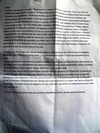 gestión y no para cometer cosas indebidas. Aceptó también que sufría acoso sexual por parte de su exjefa y que por no ceder a sus pretensiones empezó a ser maltratada.
