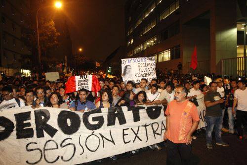 26 de enero: El pleno del Congreso derogó la Ley 30288, conocida coloquialmente como Ley Pulpín. Sus defensores consideraban que promovía el acceso de un sector de jóvenes al mercado laboral; sus detractores, representados por colectivos juveniles, realizaron hasta cinco movilizaciones de protesta desde diciembre 2014, cuando fue aprobada.