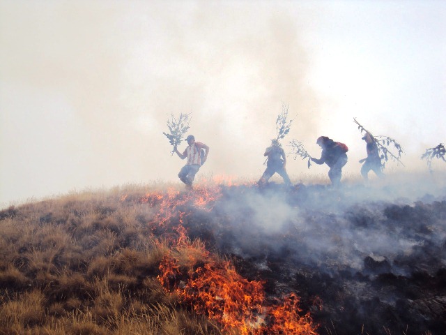 Unos 300 comuneros de Chora trabajaron arduamente para tratar de apagar el incendio. Hoy las autoridades de este caserío, ubicado a cuatro horas de Chimbote, piden ayuda, pues han perdido sus sembríos.
