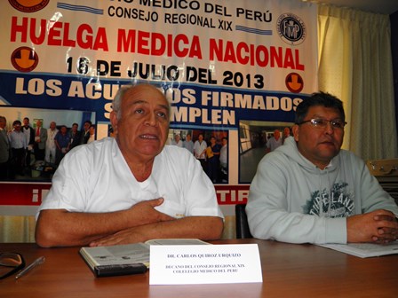 Por su parte, el decano del Colegio Médico, Carlos Quiroz Urquizo, puntualizó que en el Congreso de la República está por aprobarse un proyecto de ley presentado por el presidente de la República, Ollanta Humala Tasso, para la reestructuración salarial y una reorganización del sector Salud.
