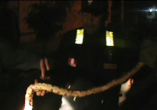 Chimbote en Línea (Regionales).- Los vecinos de la calle Manuel Gonzales Prada del asentamiento humano Javier Heraud en el distrito de Santa vivieron anoche momentos de terror luego de que una serpiente de más de 1 metro 30 centímetros escapara por los techos de una de las viviendas.