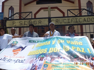 En esta masiva marcha encabezada por el alcalde del distrito de Santa, Oscar Velarde Ichikawa, participaron delegaciones de las localidades de San Carlos, Javier Heraud y Rafael Seminario.
